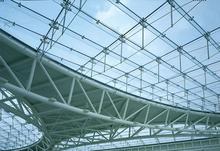 點(diǎn)支撐玻璃幕墻是由玻璃面板、點(diǎn)支承裝置和支承結(jié)構(gòu)構(gòu)成的玻璃幕墻。其支撐結(jié)構(gòu)形式有玻璃肋支撐,單根型鋼或鋼管支撐,桁架支撐及張拉桿索體系支撐結(jié)構(gòu)。