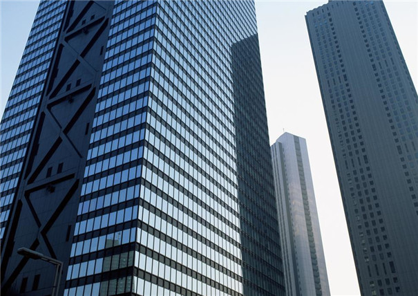 現(xiàn)代化高層建筑的玻璃幕墻采用了由鏡面玻璃與普通玻璃組合,隔層充入干燥空氣或惰性氣體的中空玻璃。中空玻璃有兩層和三層之分,兩層中空玻璃由兩層玻璃加密封框架,形成一個夾層空間;三層玻璃則是由三層玻璃構(gòu)成兩個夾層空間。中空玻璃具有隔音、隔熱、防結(jié)霜、防潮、抗風(fēng)壓強(qiáng)度大等優(yōu)點(diǎn)。據(jù)測量,當(dāng)室外溫度為-10℃時,單層玻璃窗前的溫度為-2℃,而使用三層中空玻璃的室內(nèi)溫度為13℃。而在炎熱夏天,雙層中空玻璃可以擋住90%的太陽輻射熱。陽光依然可以透過玻璃幕墻,但曬在身上大多不會感到炎熱。使用中空玻璃幕墻的房間可以做到冬暖夏涼,極大地改善了生活環(huán)境。